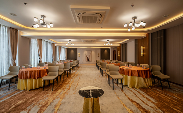 A spacious and refined indoor banquet hall ideal for corporate conferences, meetings, and large-scale events with premium amenities.
